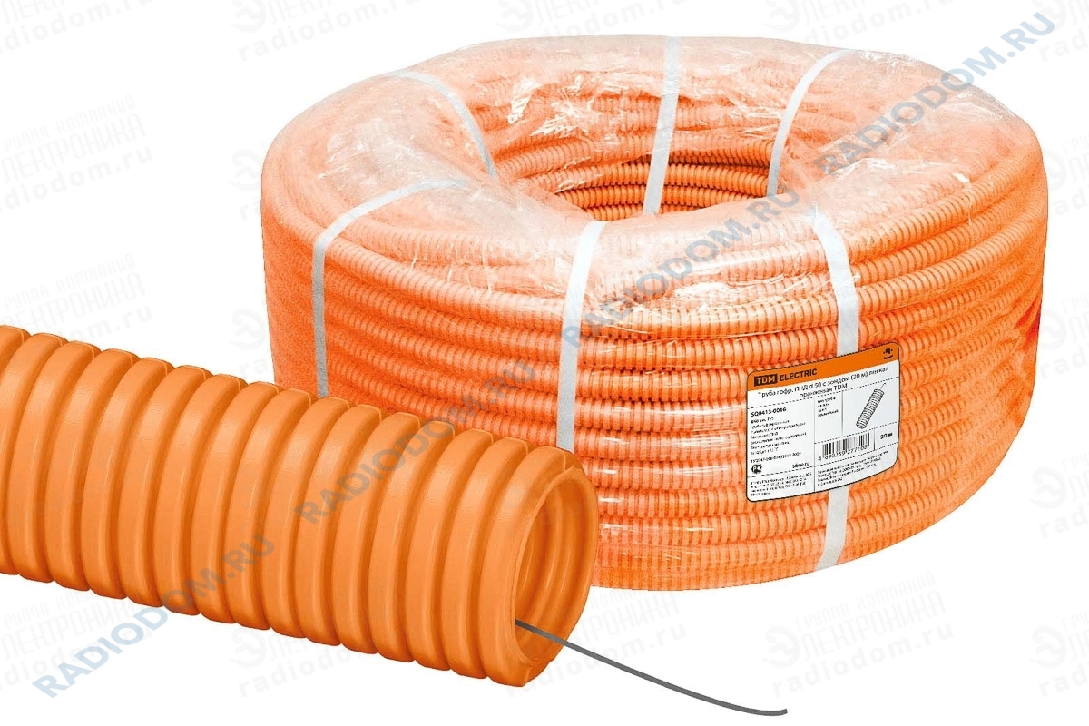 Труба гофрированная ПВХ 50мм с зондом 20м Оранжевая ПНД SQ0413-0016 TDM ELECTRIC SQ0413-0016