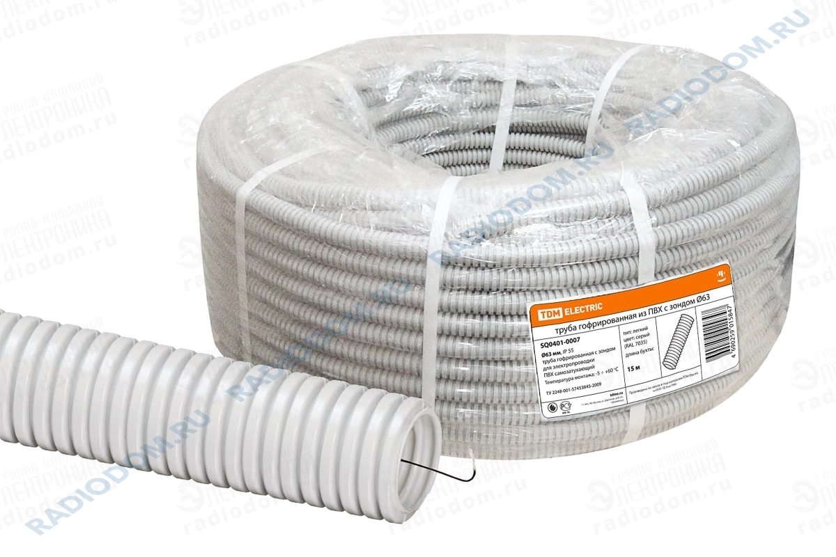 Труба гофрированная ПВХ 63мм с зондом 15 м, SQ0401-0007 TDM ELECTRIC SQ0401-0007