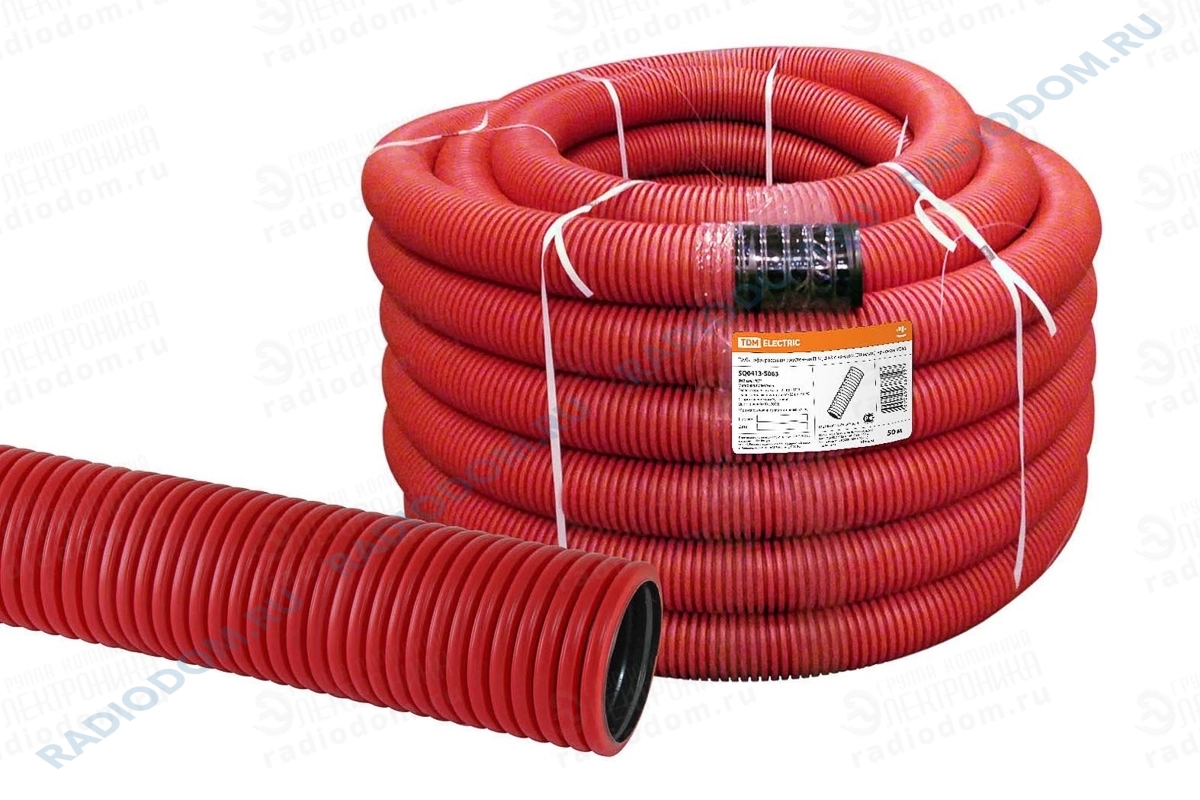 Труба гофрированная ПВХ 63мм с зондом 50м двустенняя красная TDM ELECTRIC SQ0413-5063