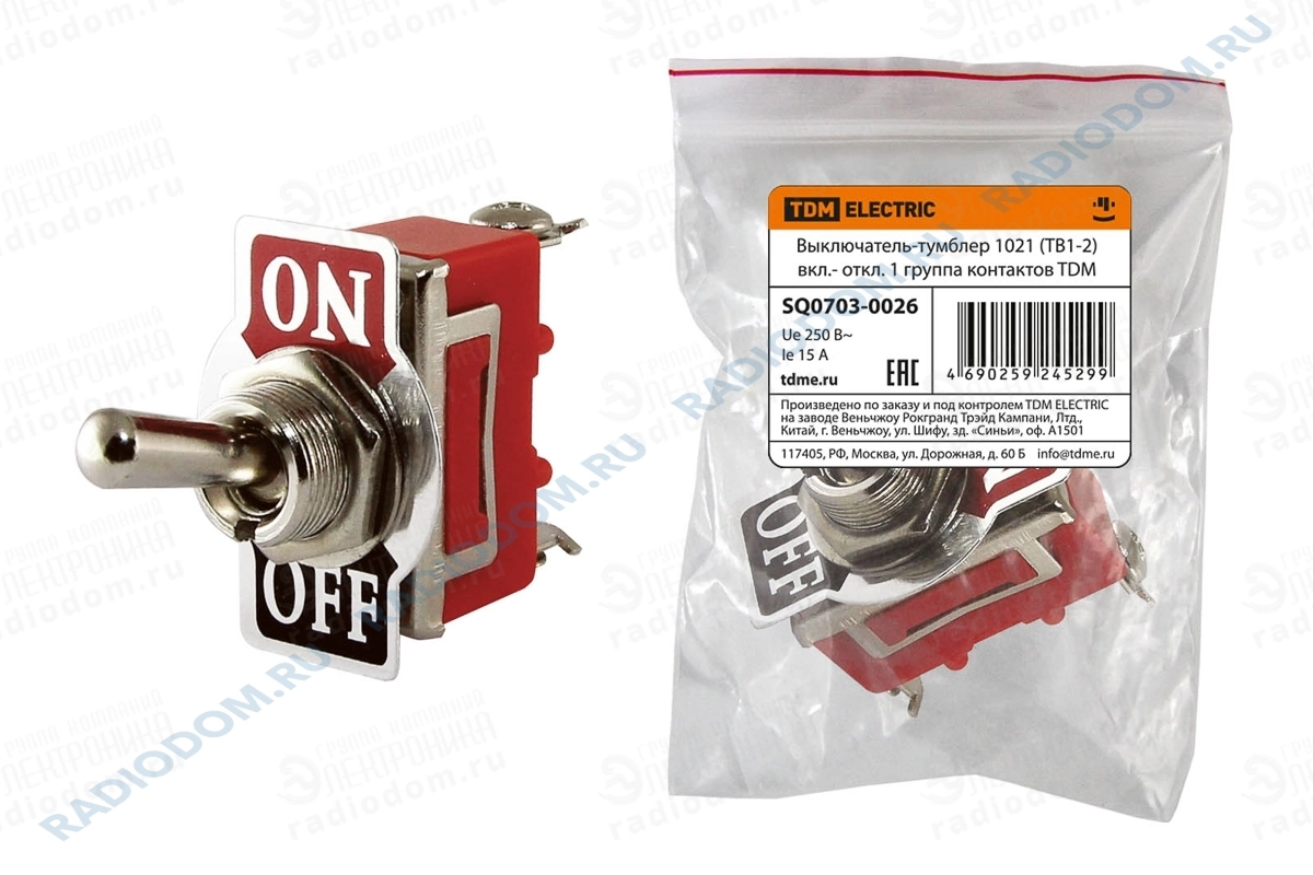 Тумблер ТВ1-2 1021 ON-OFF 1 группа контактов TDM ELECTRIC