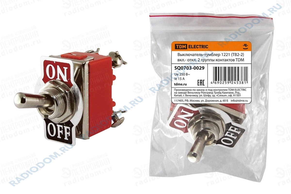 Тумблер ТВ2-2 1221 ON-OFF 2 группы контактов TDM ELECTRIC