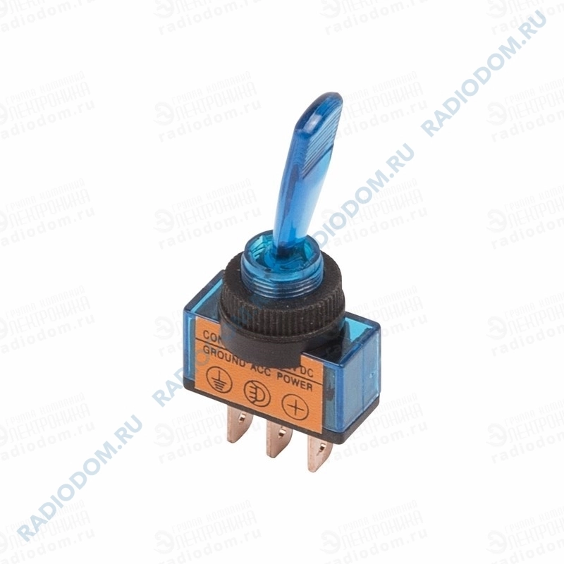 Тумблер 12В/20А синий с подсветкой ASW-13D длинный 2 положения ON-OFF Rexant