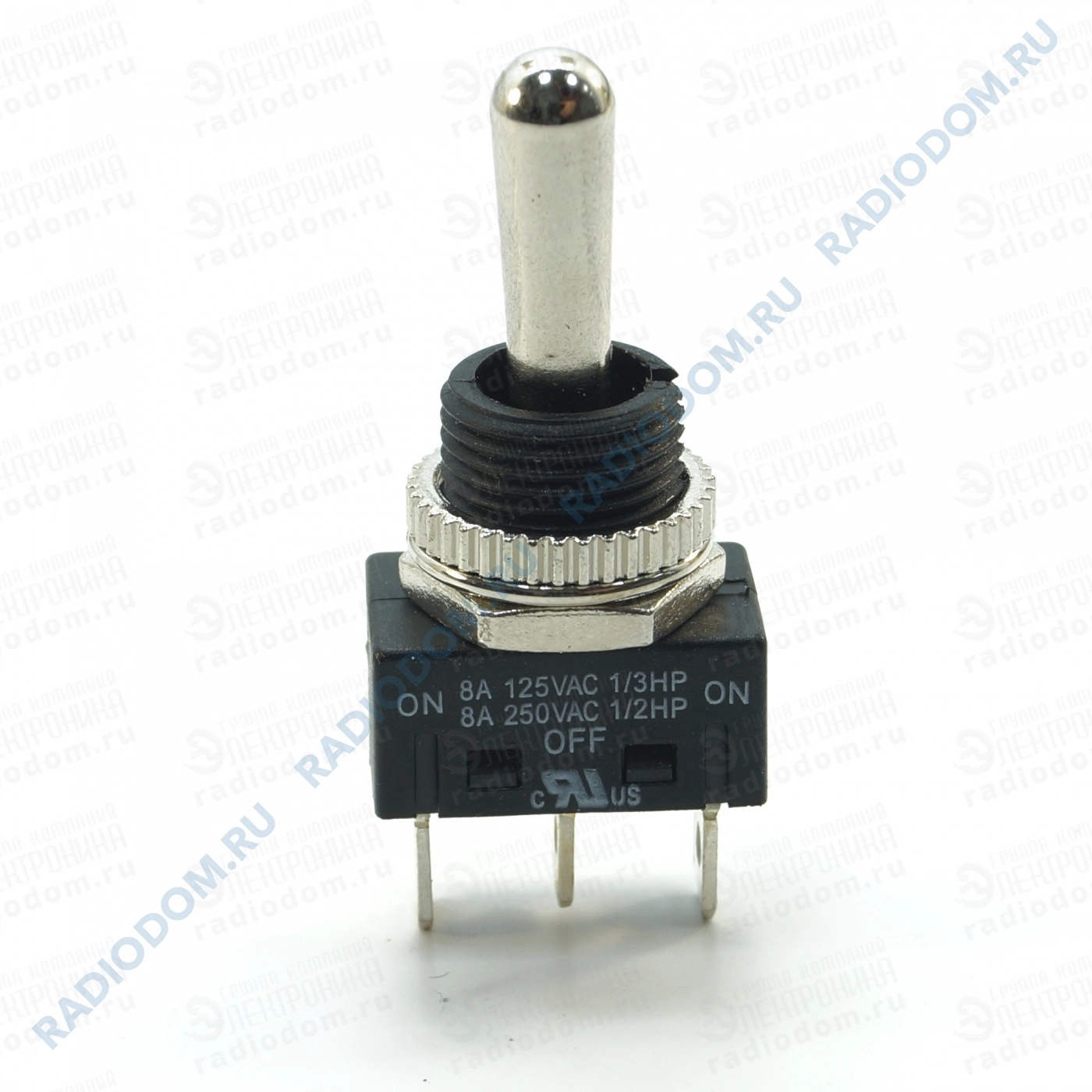 Тумблер чёрный R13-412D2 8А 250V мет 3 pin ON-OFF-ON