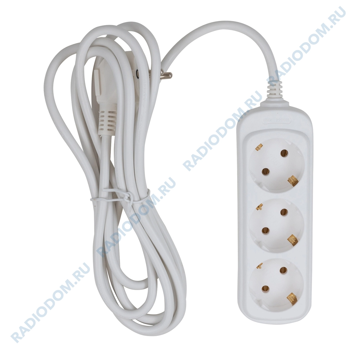 Удлинитель 3 гнезда 3,0м земля 10А белый СТАРТ