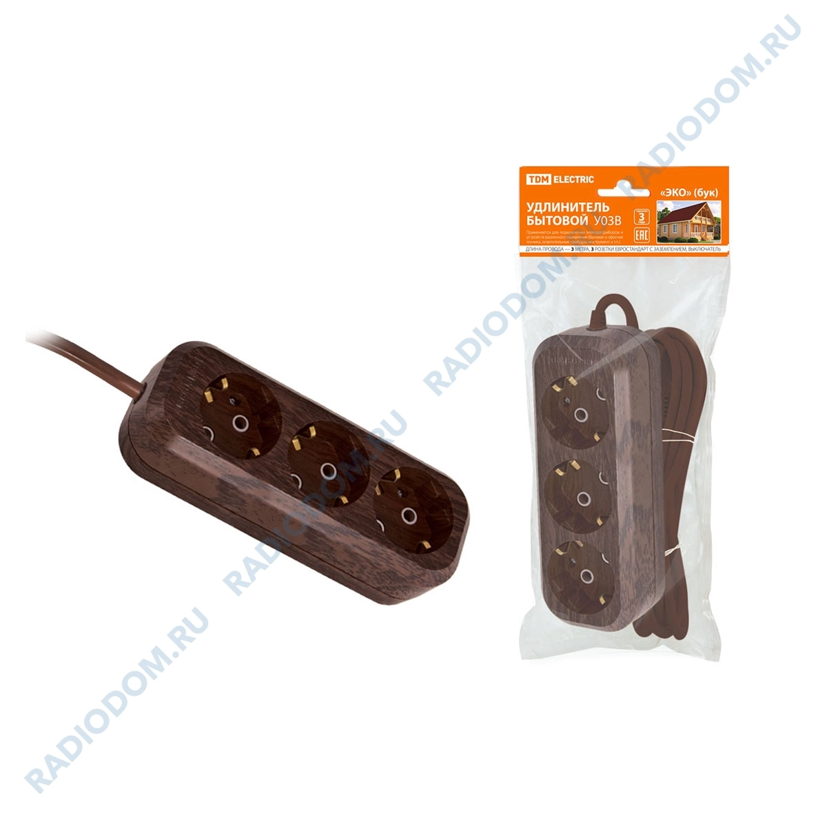 Удлинитель 3 гнезда 3м 16А с заземлением TDM ELECTRIC