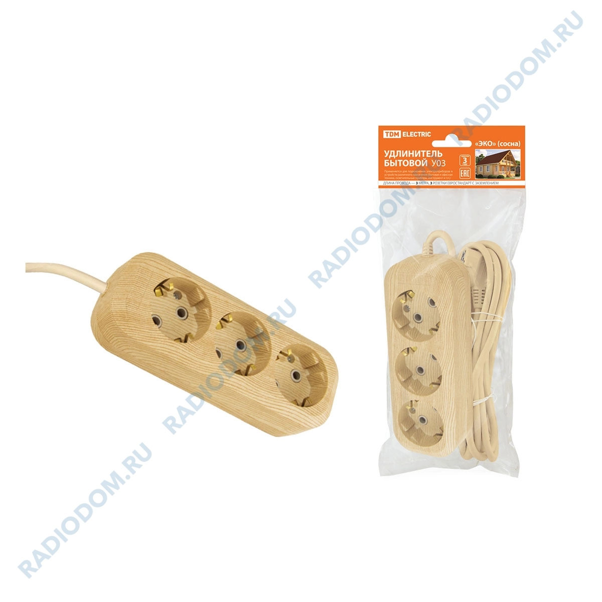 Удлинитель 3 гнезда 3м 16А с заземлением TDM ELECTRIC