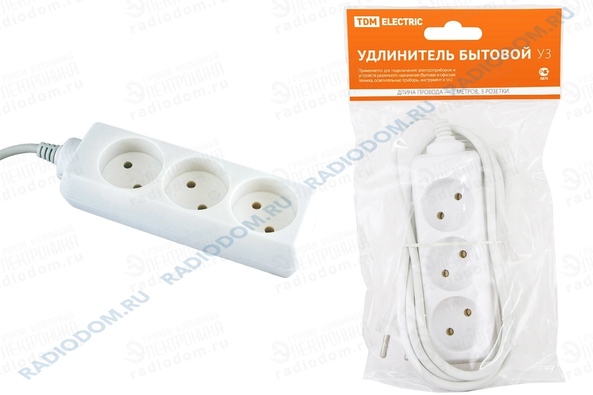 Удлинитель 3 гнезда 5м 10А TDM ELECTRIC