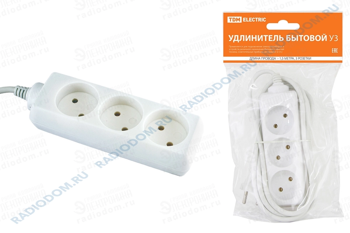 Удлинитель 3 гнезда 1,5м 10А TDM ELECTRIC