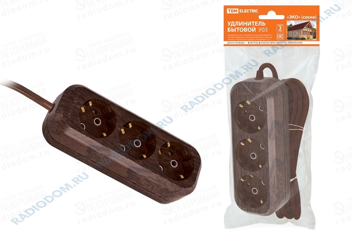 Удлинитель 3 гнезда 5м 16А с заземлением TDM ELECTRIC