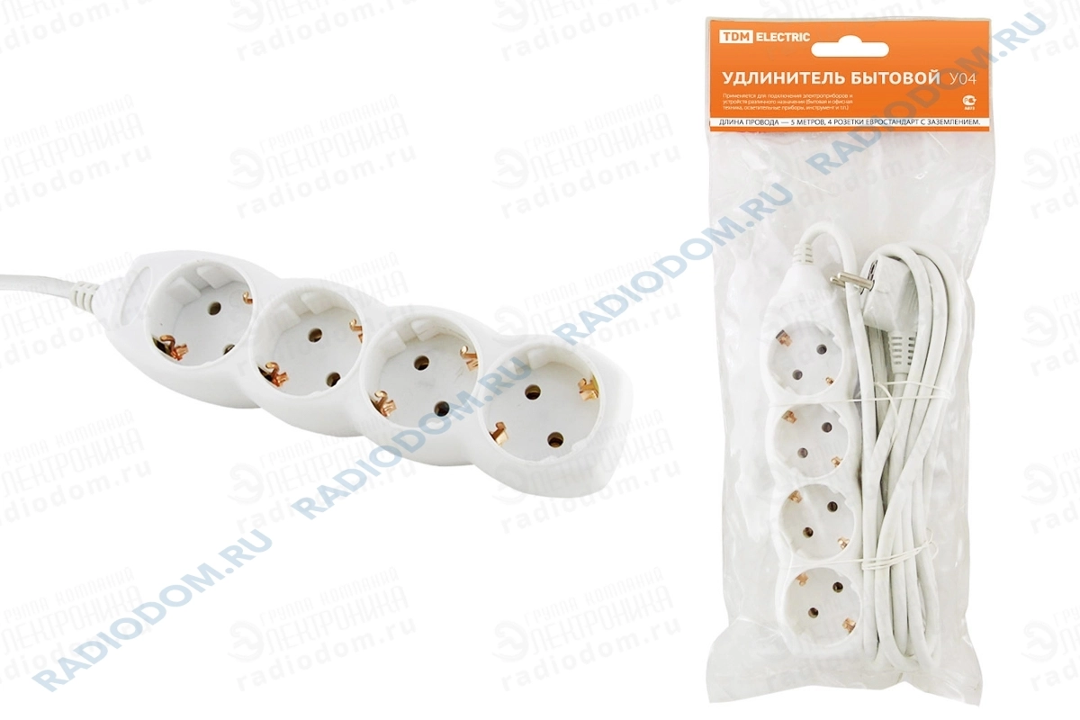 Удлинитель 4-розетки 5м с заземлением 3x1мм 16А У04 TDM ELECTRIC SQ1303-0012