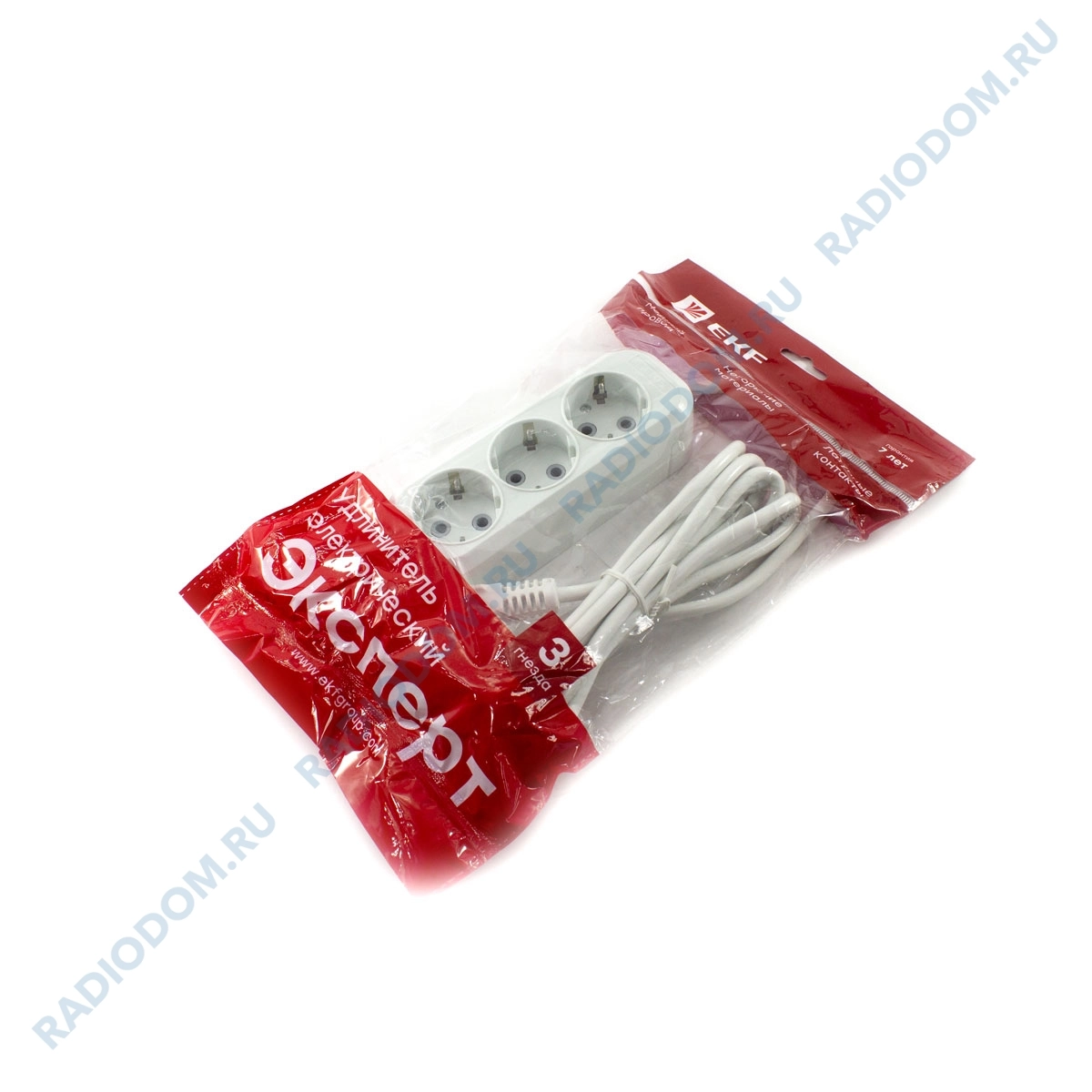 Бытовой удлинитель Эксперт на 3 розетки с заземлением. Используется кабель ПВС длиной 3 метра с сечением 3х1 мм. Удлинитель предназначен для подключения различных бытовых электрических приборов общей мощностью до 3,5 кВт.