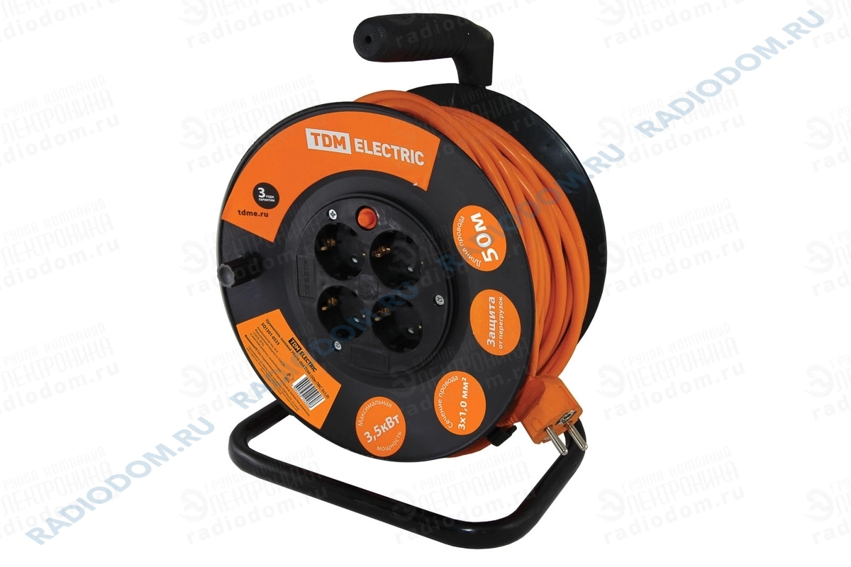 Удлинитель 4-розетки 50м на катушке с заземлением УКз16-004 ПВС 3x1,0 К40Ф50 TDM ELECTRIC SQ1301-0533