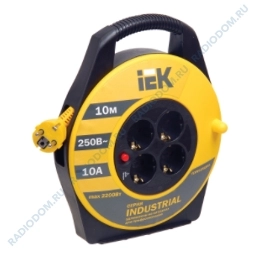 Удлинитель на катушке 4 гнезда 10м 10A с заземлением черный iEK