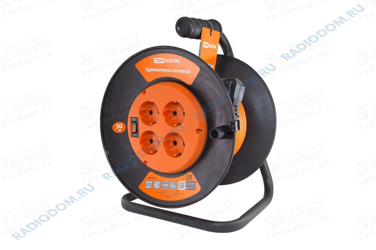 Удлинитель на катушке 4 гнезда 30м 16А с заземлением TDM ELECTRIC