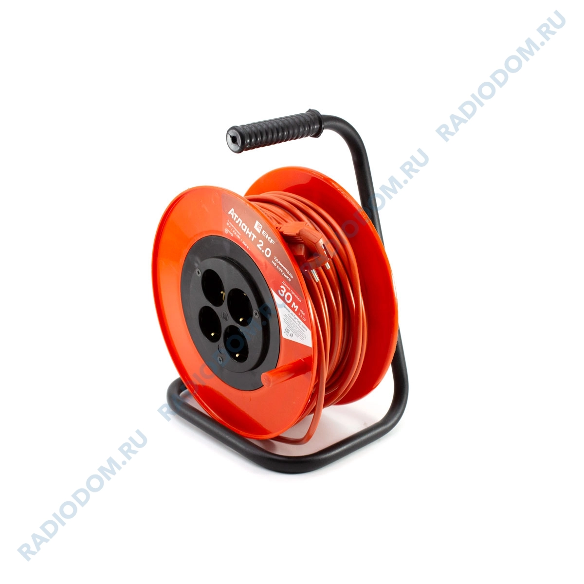 Удлинитель 4-розетки 30м на катушке с заземлением 3x1,0мм Атлант 2.0 PROxima EKF