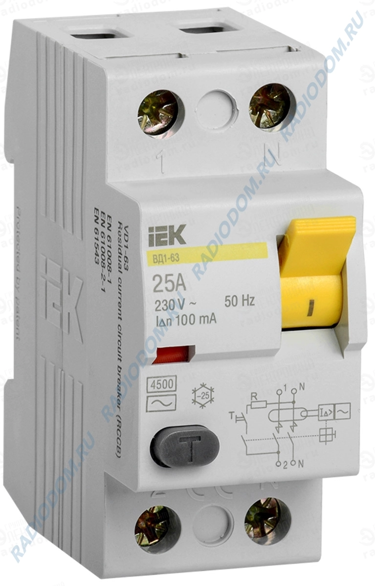 Устройство защитного отключения 2P 25А 100мA ВД1-63 iEK