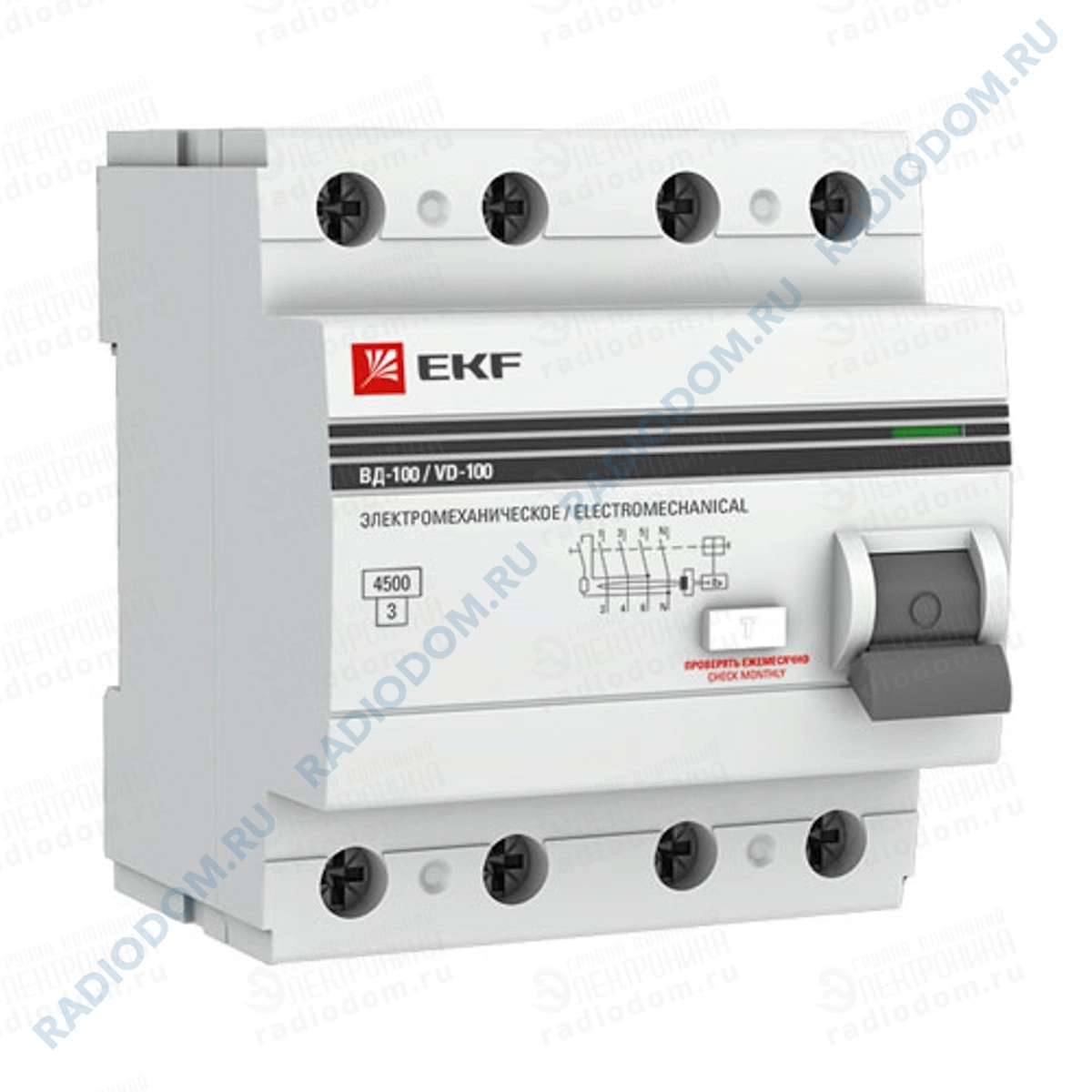Электромеханическое устройство защитного отключения ВД-100 используются для защиты от поражения электричеством при взаимодействии с неисправным электрооборудованием и предотвращении возгорания при длительном прохождении токов утечки. Устанавливается совместно с автоматическими выключателями. При обнаружении неисправности УЗО отключит автомат для прекращения подачи электричества на защищаемый участок цепи. Номинальный ток 32 А. Срабатывание при дифференциальном значении 30 мА.. Ширина равна 4 модулям. Глубина установки 66 мм. Общее количество полюсов – 4. Номинальная отключающая способность 4,5 кА.. Возможна коммутация медным и алюминиевым проводником. Максимальное сечение подключаемого кабеля 25 мм2.Гарантия от производителя 7 лет.