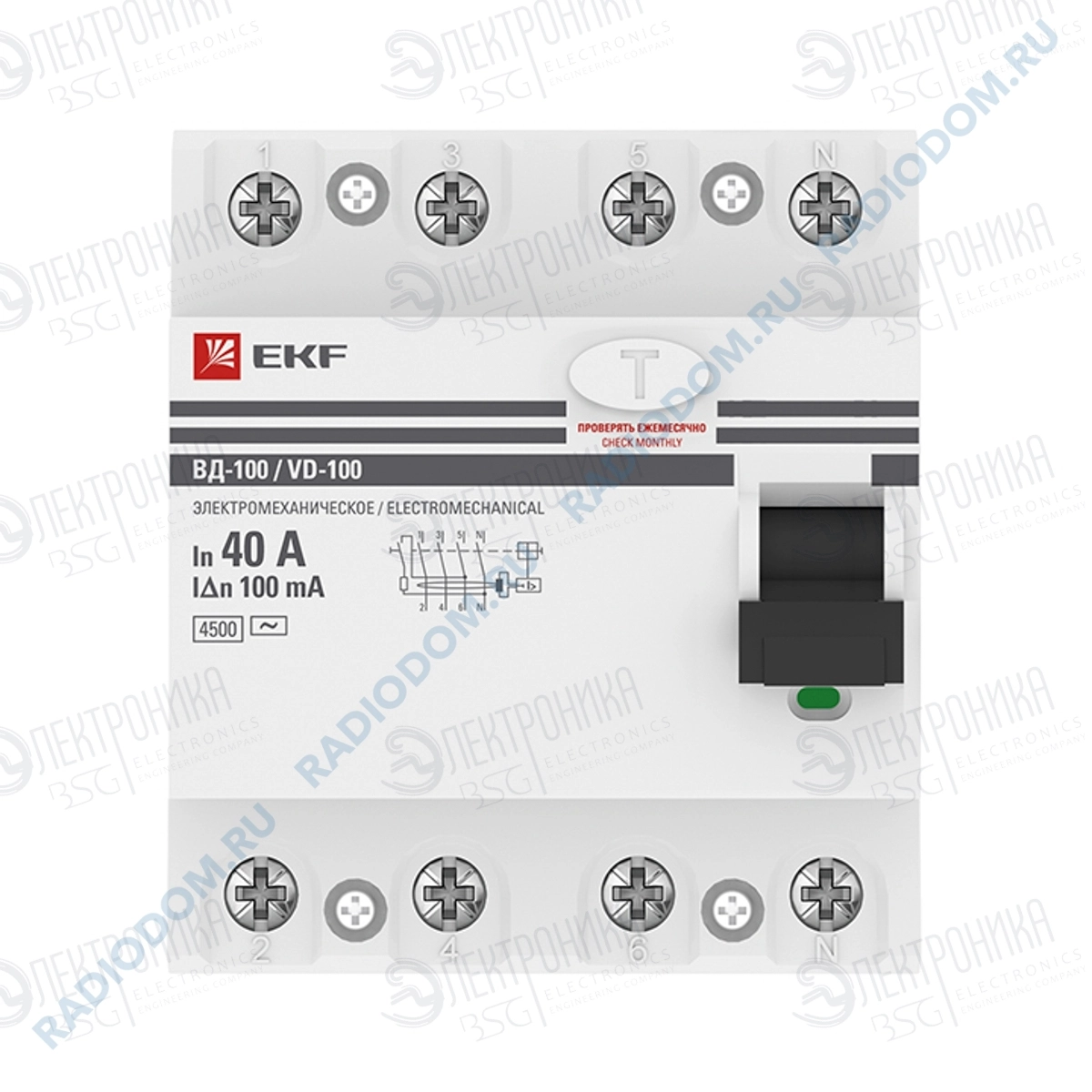 Электромеханическое устройство защитного отключения ВД-100 используются для защиты от поражения электричеством при взаимодействии с неисправным электрооборудованием и предотвращении возгорания при длительном прохождении токов утечки. Устанавливается совместно с автоматическими выключателями. При обнаружении неисправности УЗО отключит автомат для прекращения подачи электричества на защищаемый участок цепи. Номинальный ток 40 А. Срабатывание при дифференциальном значении 100 мА.. Ширина равна 4 модулям. Глубина установки 66 мм. Общее количество полюсов – 4. Номинальная отключающая способность 4,5 кА.. Возможна коммутация медным и алюминиевым проводником. Максимальное сечение подключаемого кабеля 25 мм2.Гарантия от производителя 7 лет.