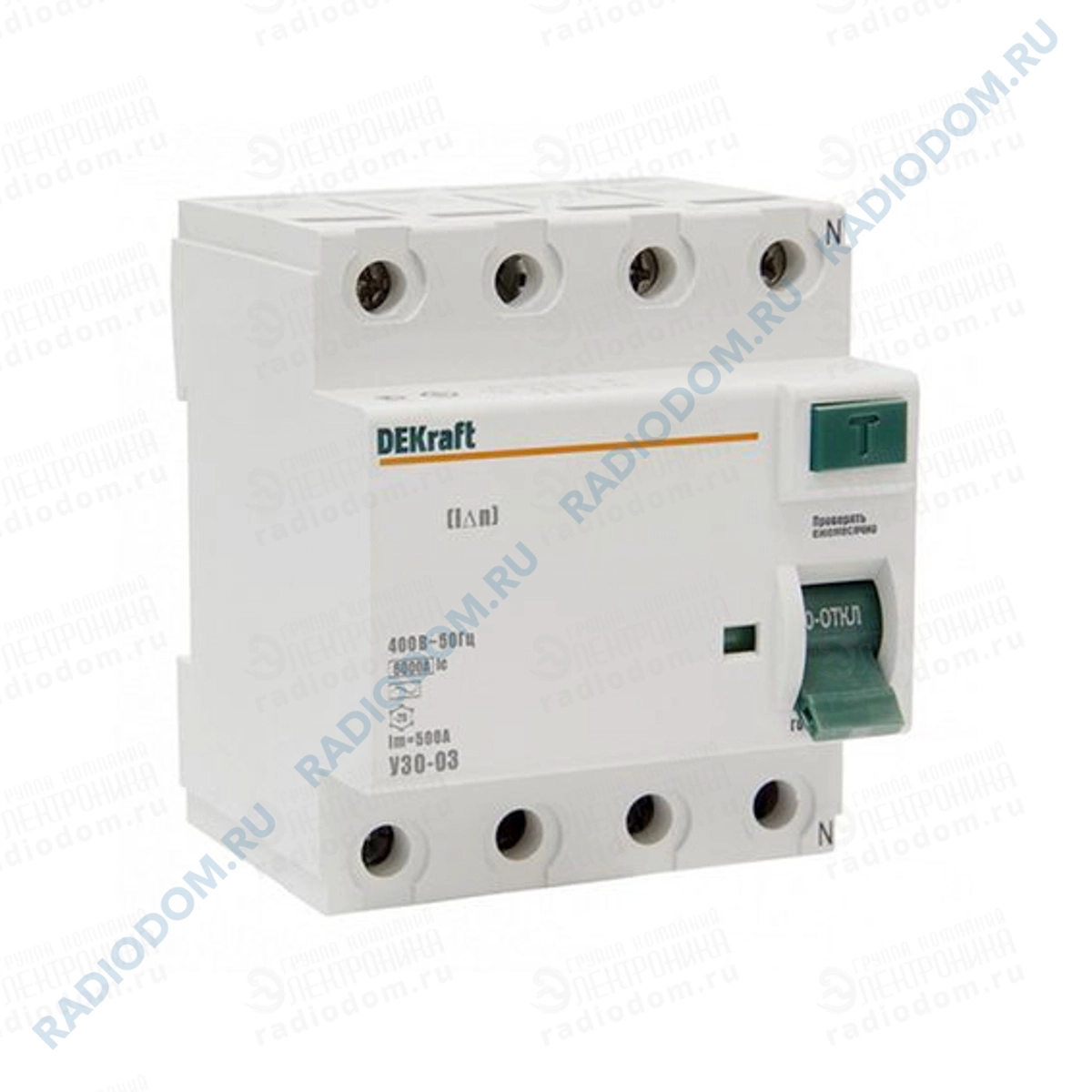 Устройство защитного отключения 4Р 25А 30мА УЗО-03 DEKraft