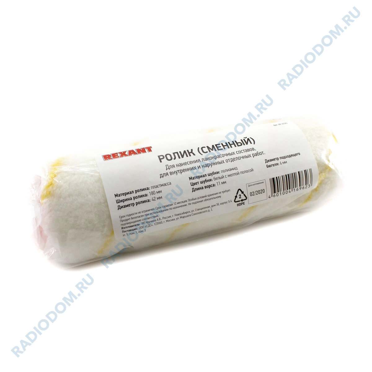 Ролик малярный торговой марки REXANT представляет собой рабочую часть валика: пластмассовый цилиндр, покрытый мягкой шубкой. Ролик легко монтирется на ручку REXANT артикул 89-0133 , а также применим и для других, подходящих по размеру ручек.