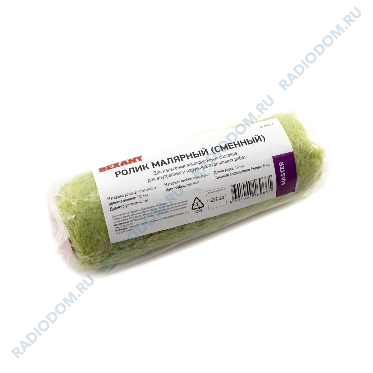 Ролик малярный серии «Мастер» торговой марки REXANT представляет собой рабочую часть валика: пластмассовый цилиндр, покрытый мягкой шубкой. Ролик легко монтируется на ручку серии «Мастер» REXANT артикул 89-0131 , а также применим и для других, подходящих по размеру ручек.
