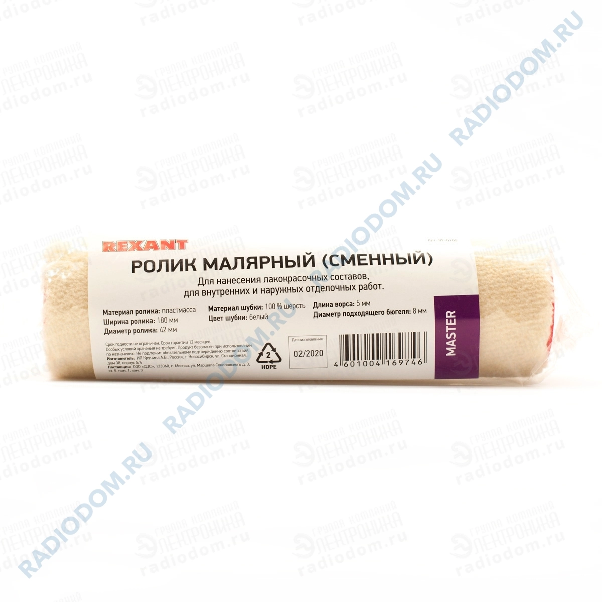 Ролик сменный велюр ворс 5мм Ø42х180мм 89-0105 Rexant