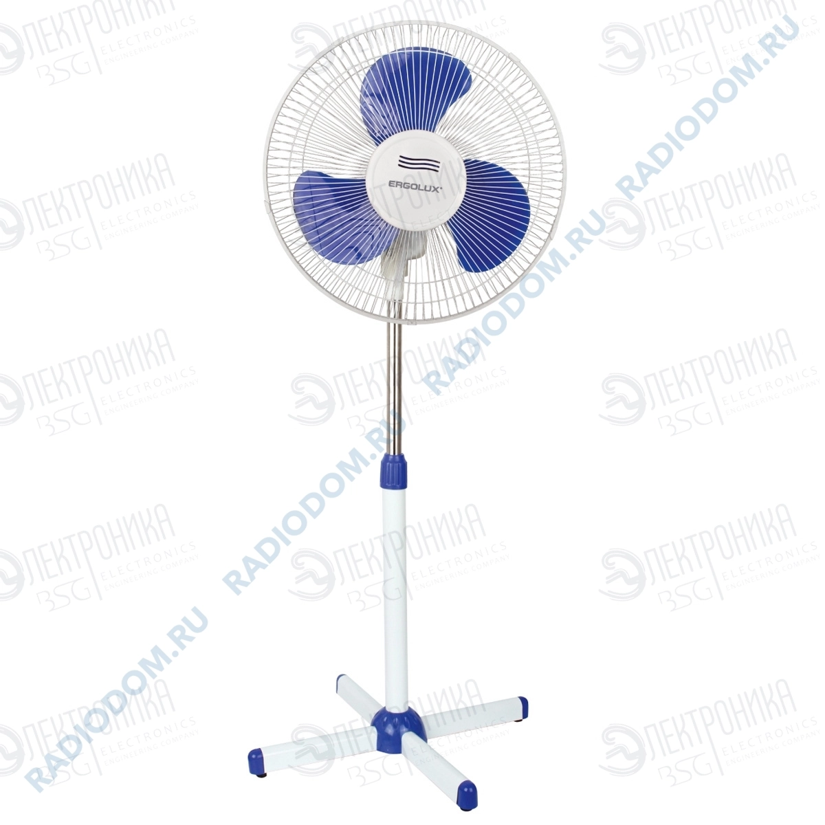 Напольный вентилятор ERGOLUX синий с белым, 16 дюймов ELX-FS01-C35 13426 - очень простой и практичный бытовой прибор для вентиляции воздуха в закрытом помещении в знойную жару. Не производит холода в отличие от кондиционера и потребляяет очень мало электроэнергии. Имеет несколько скоростей вращения лопастей для возможности выбора наиболее комфортного режима.
