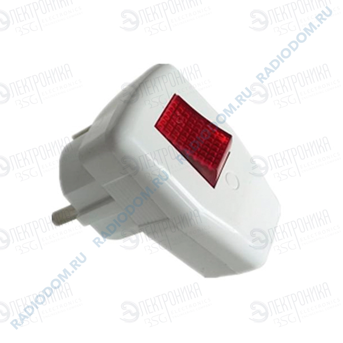 Сетевая вилка на кабель 16А 250В с выключателем белая угловая General