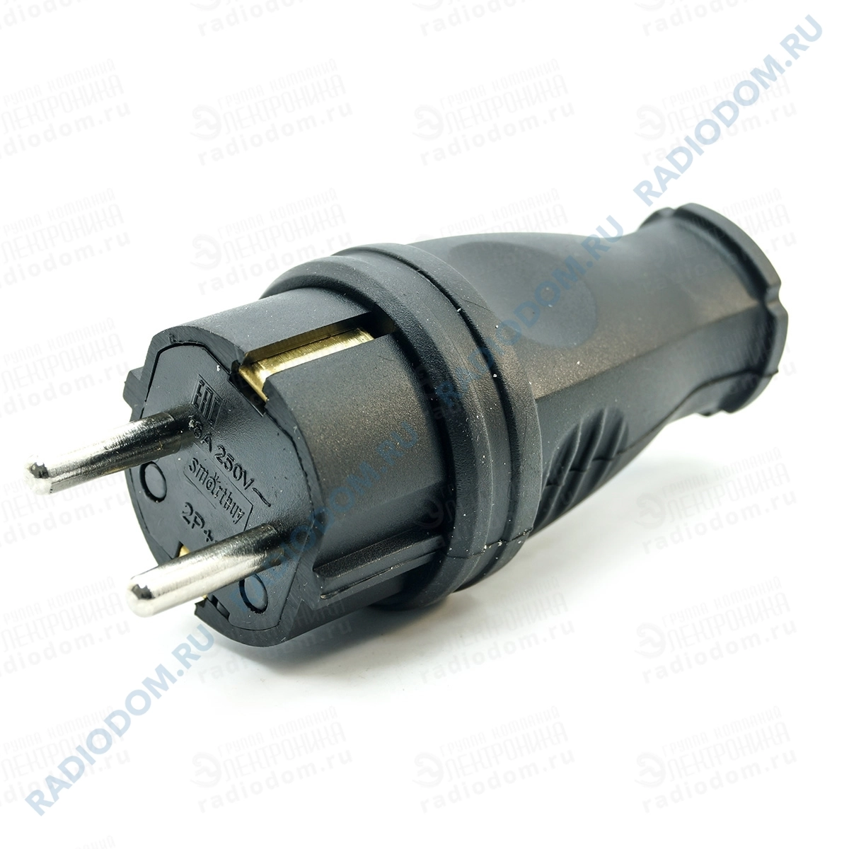 Вилка сетевая 16А с заземлением черная Smartbuy