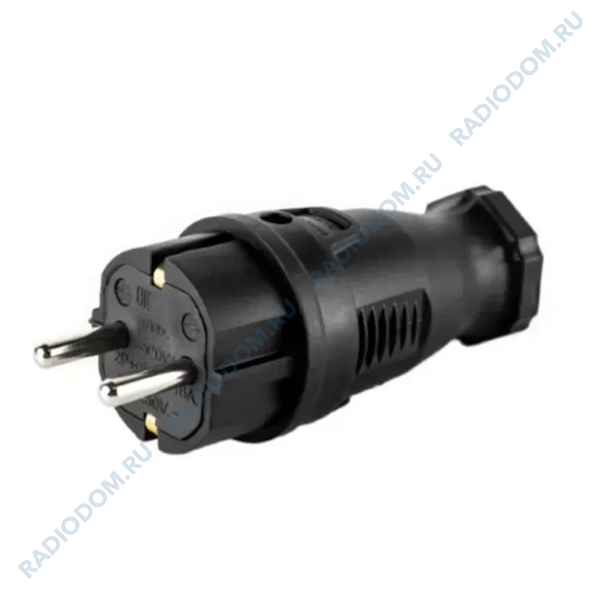 Сетевая вилка на кабель земля 16А 230В прямая каучук IP44