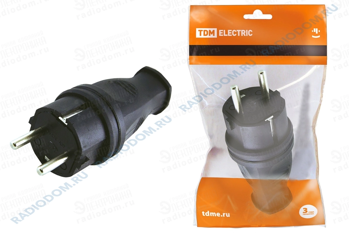 Вилка сетевая 16А с заземлением черная TDM ELECTRIC