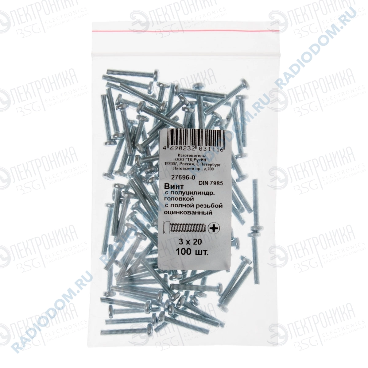 Винт 5x16 (100шт) полуцилиндрическая головка, полная резьба 27717-0 DIN7985 FIT