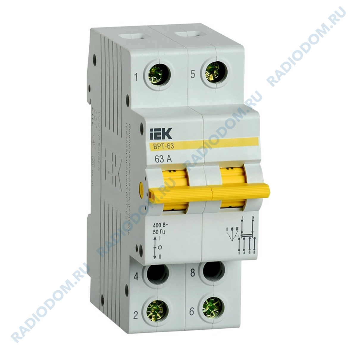 Выключатель-разъединитель трехпозиционный ВРТ-63 предназначен для коммутации смешанных активных и индуктивных нагрузок в цепях переменного тока напряжением до 400 В частотой 50 Гц. Применяется в качестве учетно-распределительного оборудования жилых и общественных зданий и сооружений, где предусматривается необходимость в оперативном отключении от сети отдельных групп электропотребителей или участков электрокоммуникации.
