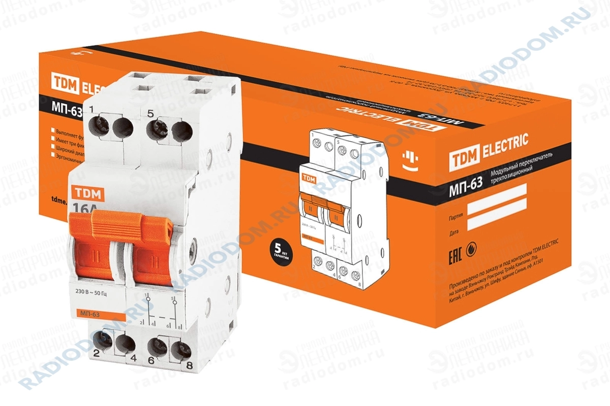 Модульный переключатель трехпозиционный 2P 16А МП-63 TDM ELECTRIC