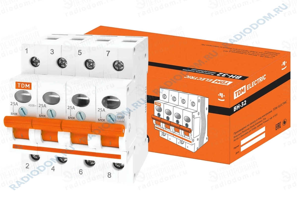 Выключатель нагрузки 4P 25А ВН-32 TDM ELECTRIC