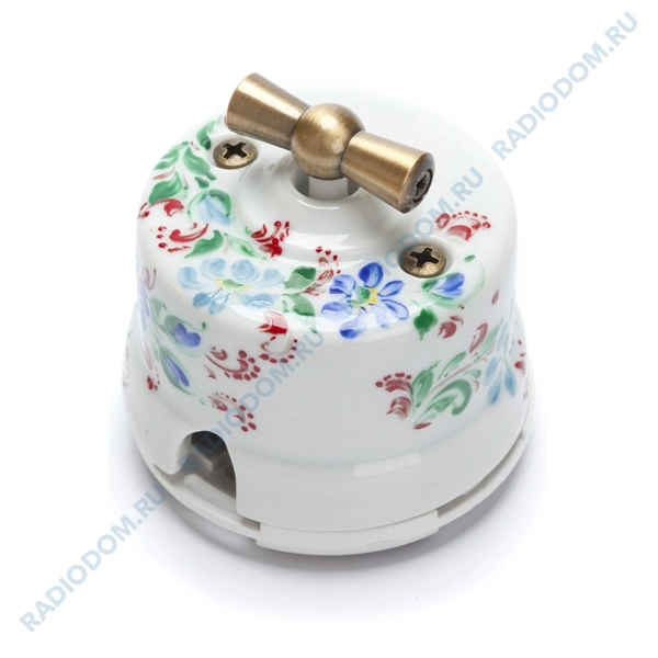 Выключатель 2 полож белый с росписью в стиле ''Жостово'' Salvador
