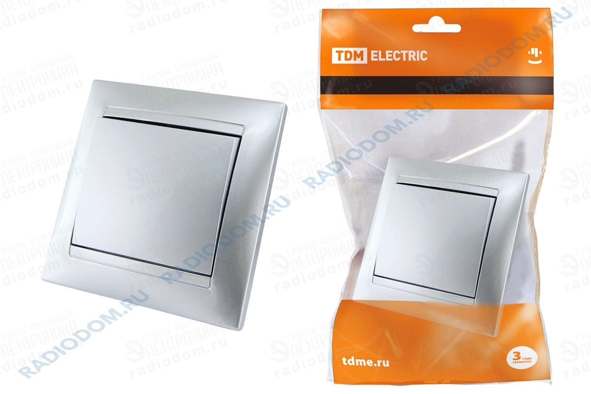 Выключатель 1 клав серебряный Лама TDM ELECTRIC SQ1815-0201