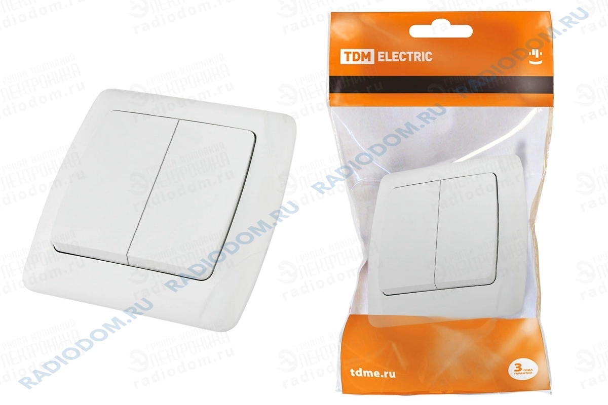 Выключатель 2 клав белый Онега TDM ELECTRIC