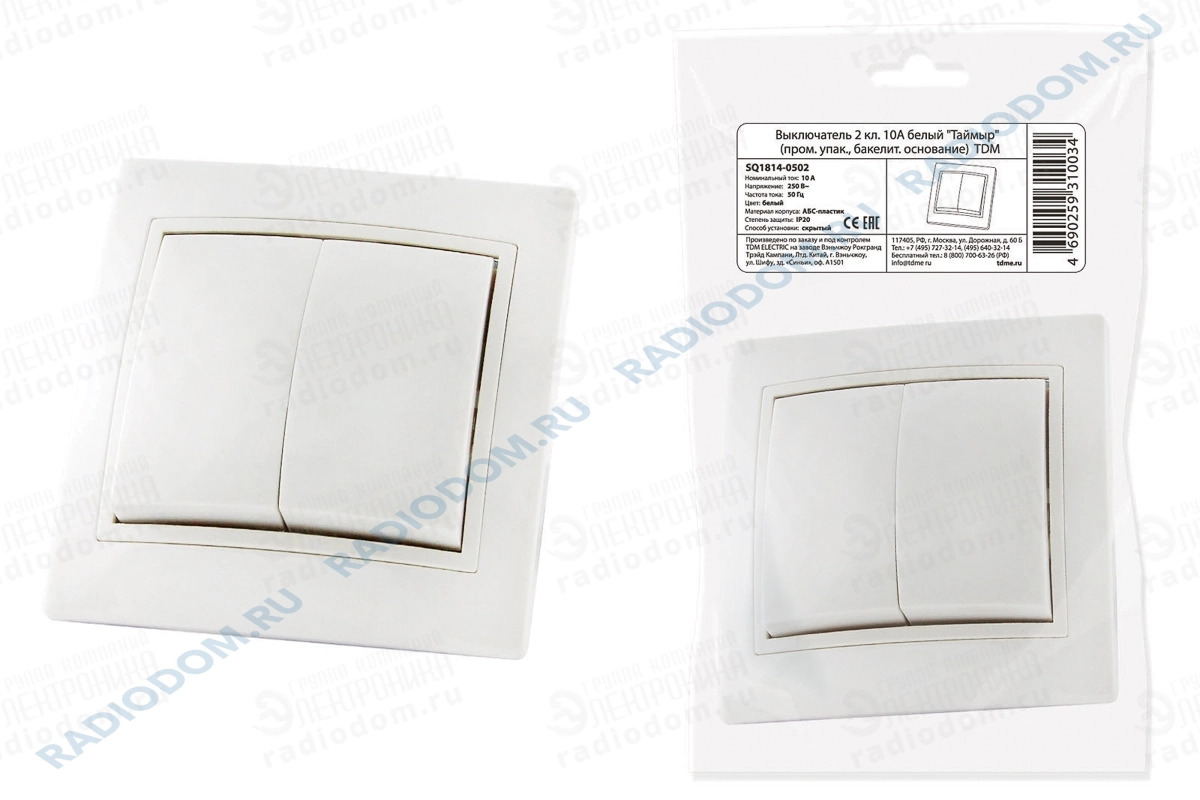 Выключатель 2 клав белый Таймыр TDM ELECTRIC
