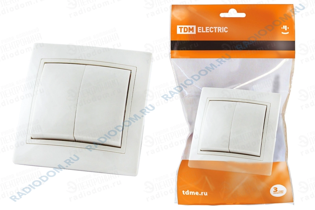 Выключатель 2 клав белый Таймыр TDM ELECTRIC