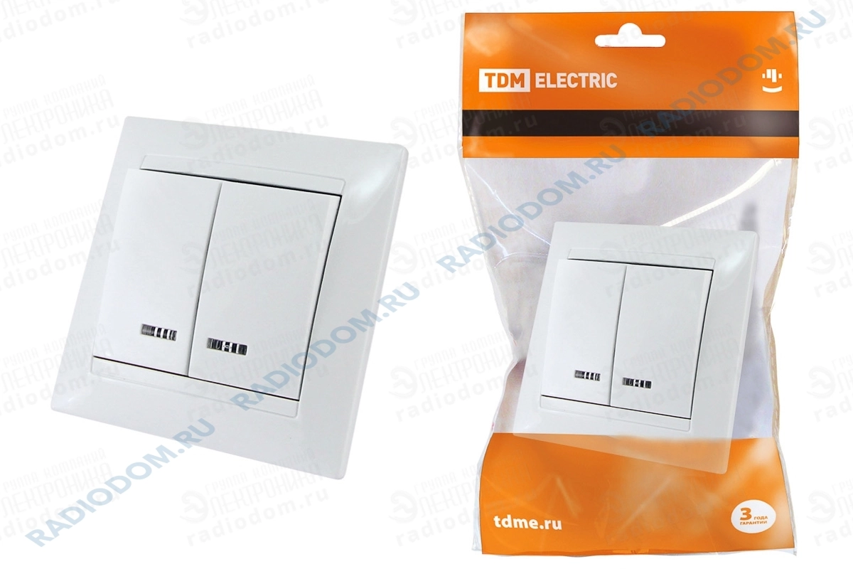Выключатель 2 клав белый Лама TDM ELECTRIC