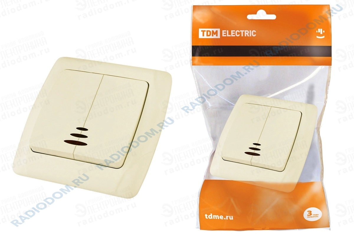 Выключатель 2 клав слоновая кость Онега TDM ELECTRIC