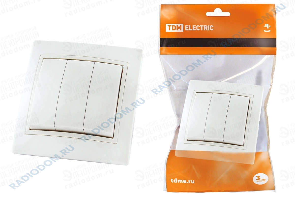 Выключатель 3 клав белый Таймыр TDM ELECTRIC