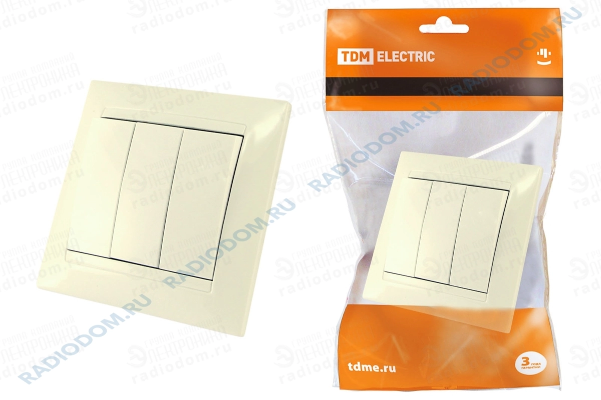 Выключатель 3 клав слоновая кость Лама TDM ELECTRIC