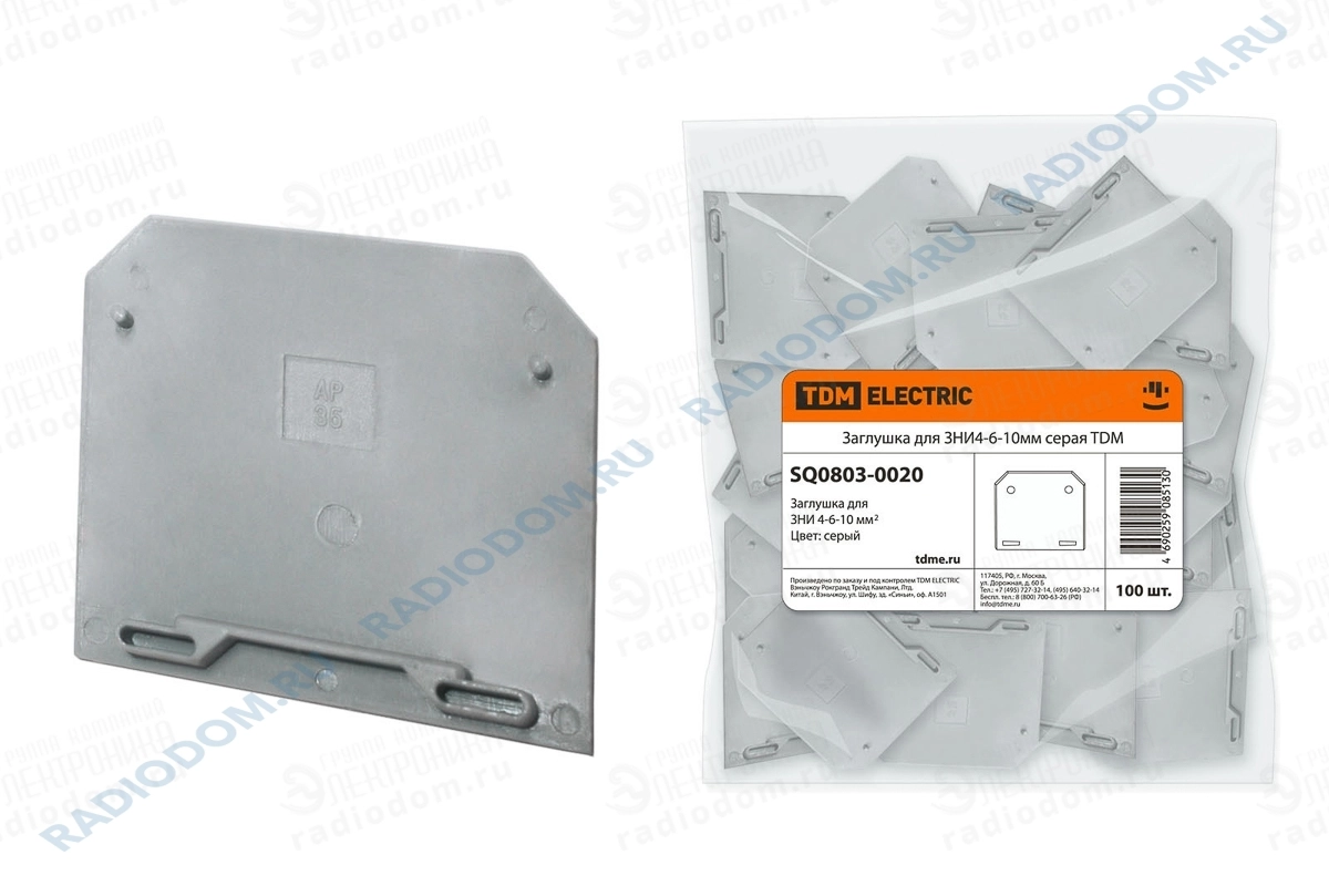 Заглушка для ЗНИ 4, 6, 10 мм2 серая TDM ELECTRIC