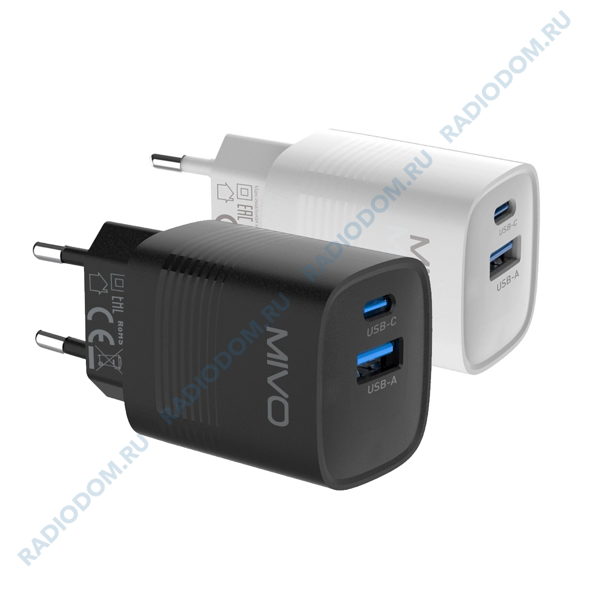 Сетевое зарядное устройство 5,0В 3,0А гнездо USB-C+USB-A 18W Mivo MP-301Q без шнура