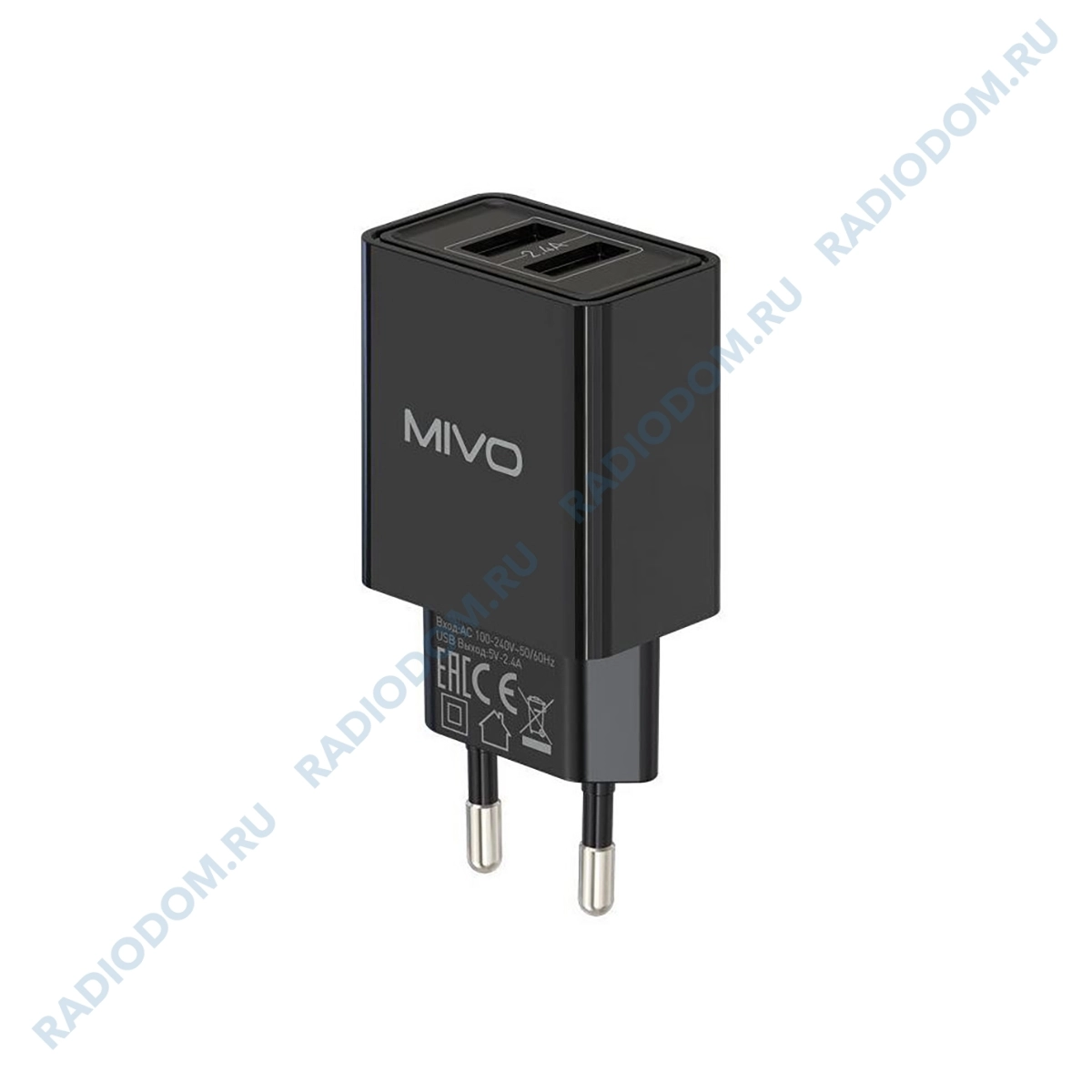 Сетевое зарядное устройство 5,0В 2,4А гнездо USBx2шт Mivo MP-223 черный