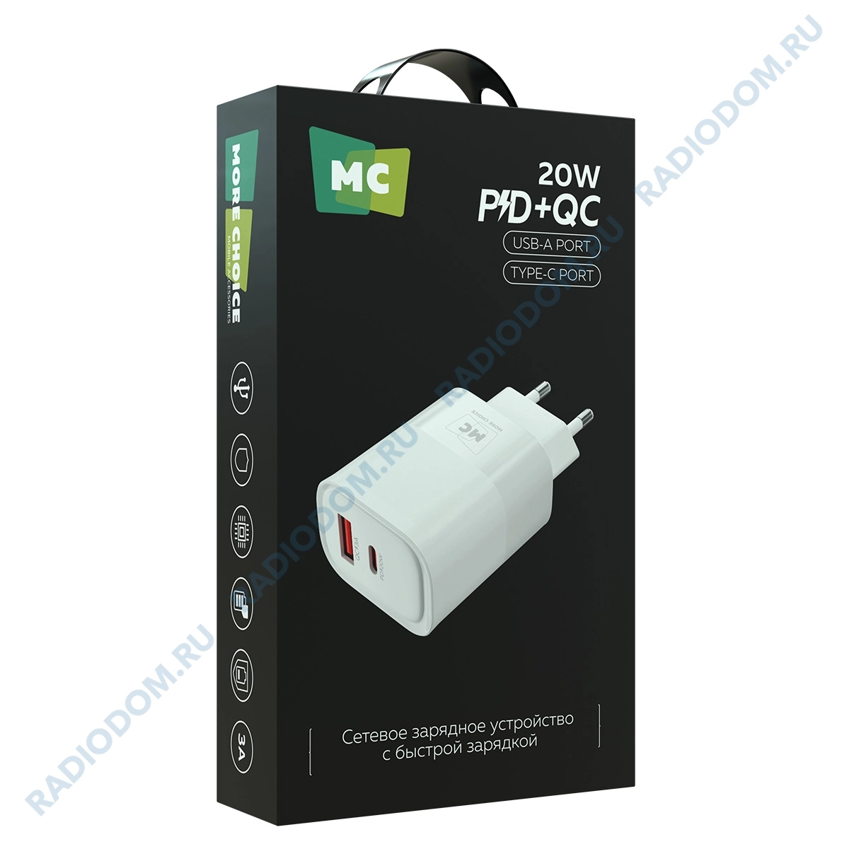 Сетевое зарядное устройство More Choice оснащено разъемами Type-C и USB-A, что что делает его универсальным и совместимым с большинством современных гаджетов. Обеспечивает эффективную и быструю зарядку. Защита от перегрузки и короткого замыкания гарантирует безопасность использования. СЗУ More Choice идеально сочетает в себе удобство, высокую мощность и надежность, предлагая пользователю не только стабильную зарядку, но и гибкость использования благодаря двум портам.