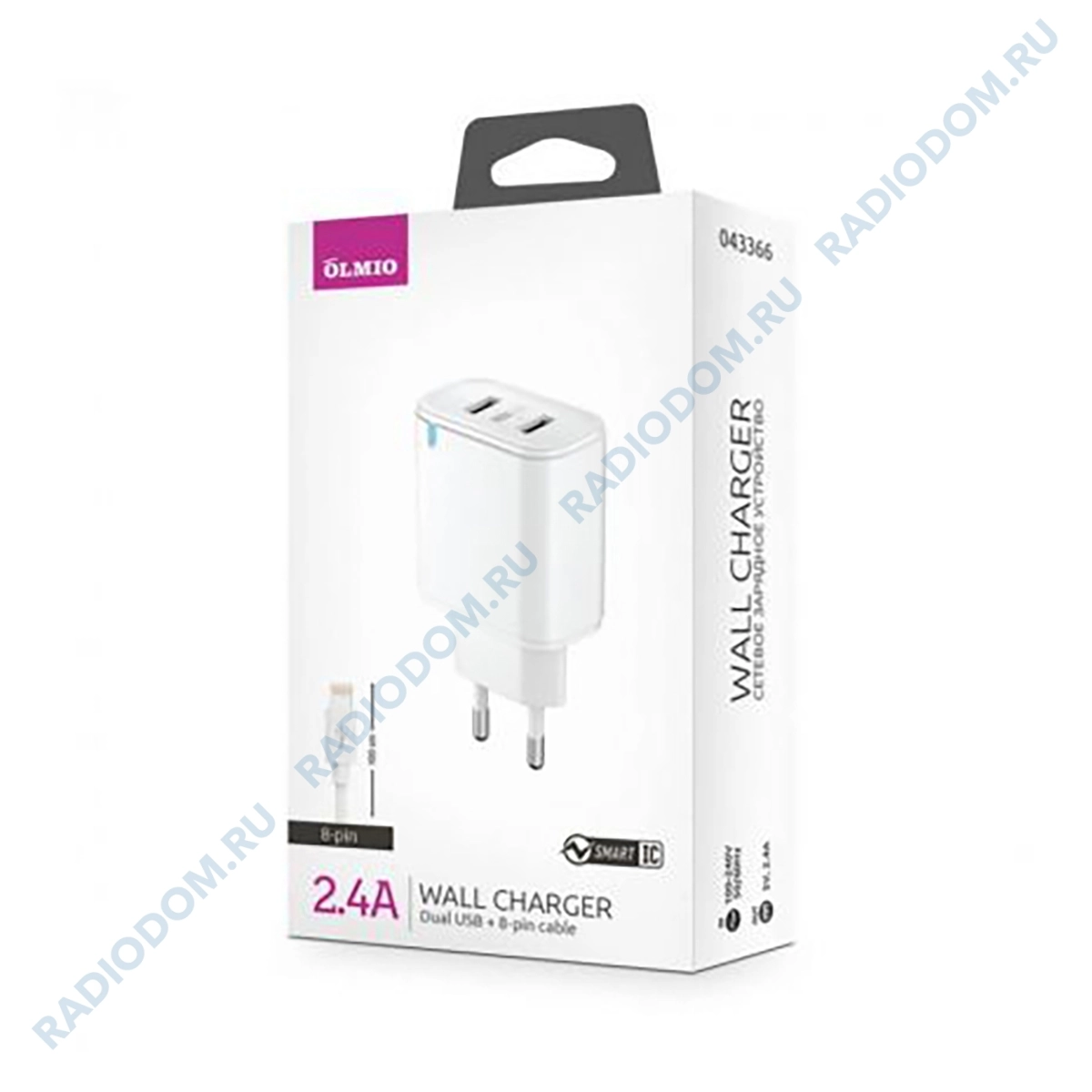 Сетевое зарядное устройство 2,4А 2хUSB + кабель lightning SmartIC OLMIO