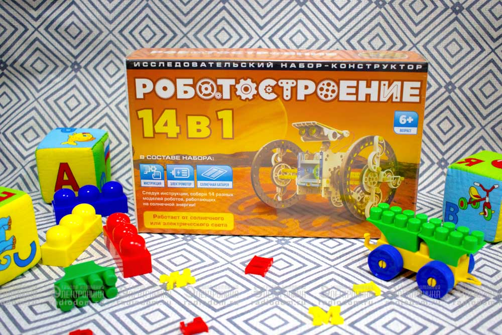 Электронный конструктор "Роботостроение"Конструирование тоже может быть веселым! Набор электронного конструктора позволит Вашему ребенку собрать настоящего робота способного двигаться, и как знать, может даже и думать благодаря бесконечному запасу солнечной энергии! Вы всей семьей сможете собрать собаку, робо-зомби, черепаху и множество других существ, прививая ребенку элементарные основы робототехники! Набор подойдет для детей от 6 лет и старше!
